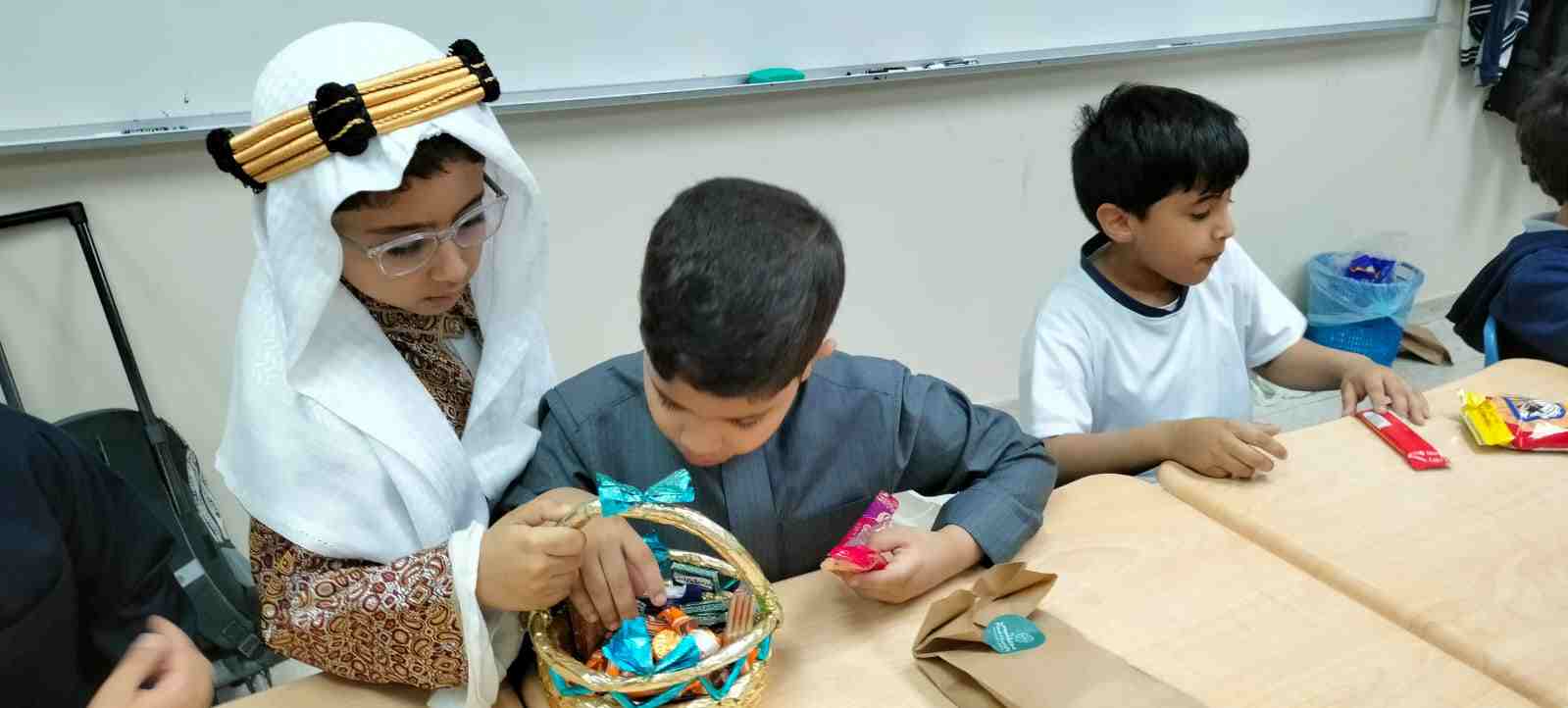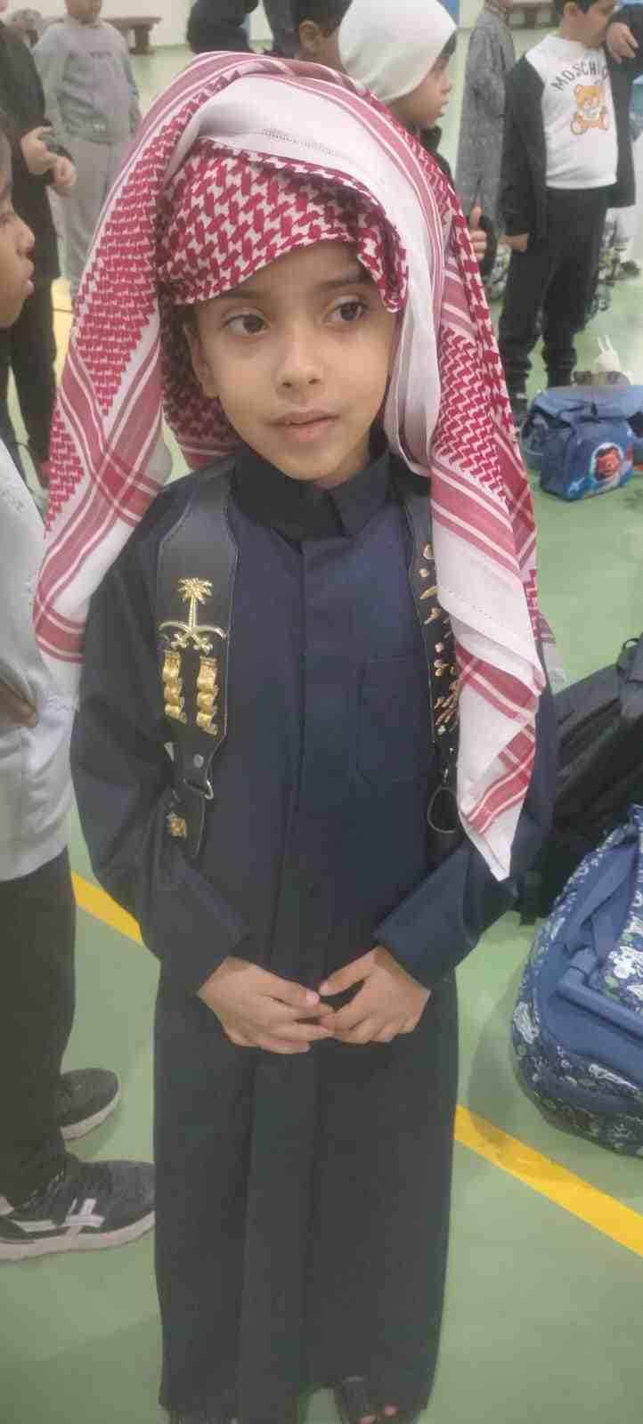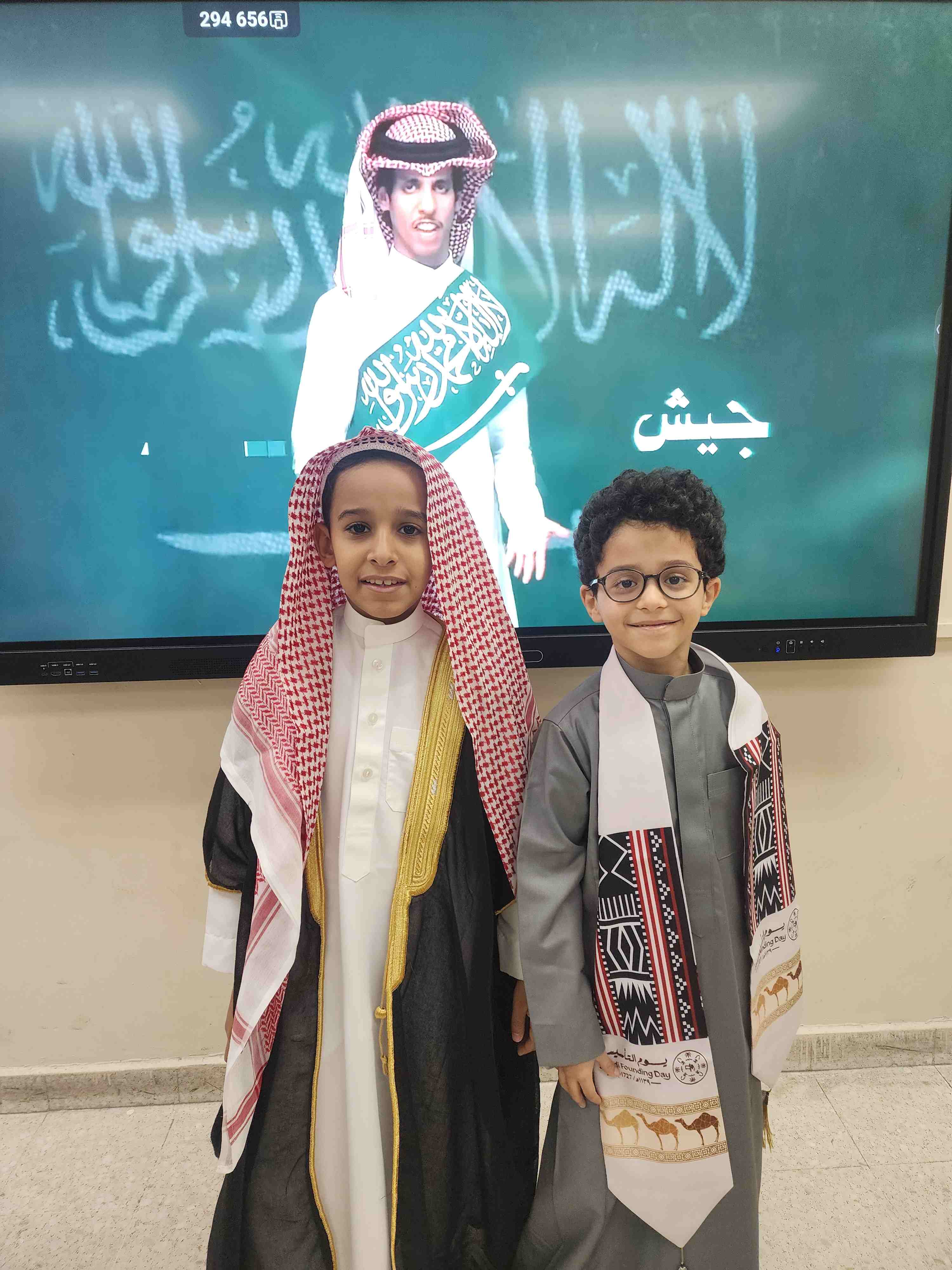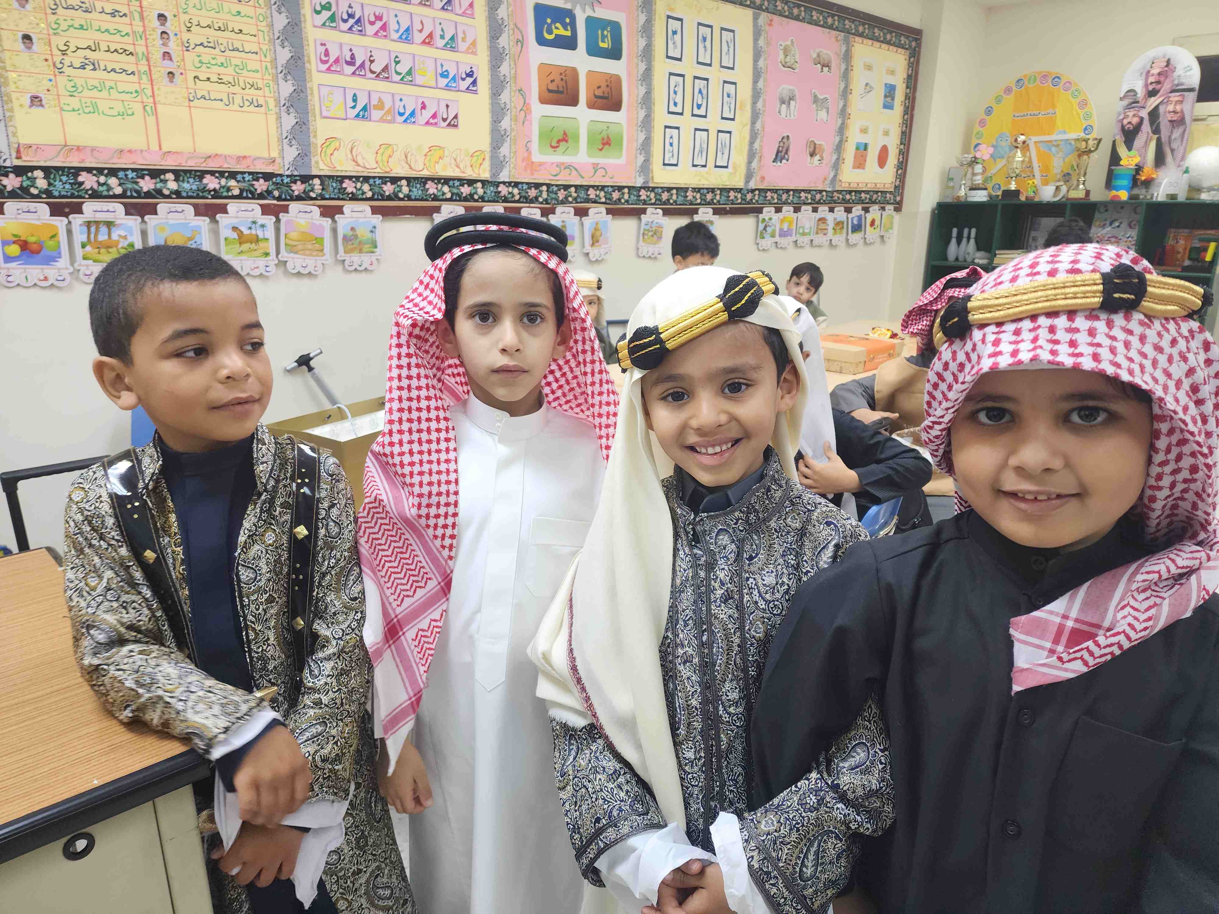 كما قدّموا توزيعات خاصة بهذه المناسبة، إلى جانب رسومات ولوحات فنية جسدت رموز الوطن وتراثه العريق، في مشهد يعكس حبهم لوطنهم واعتزازهم بقيادته الرشيدة.