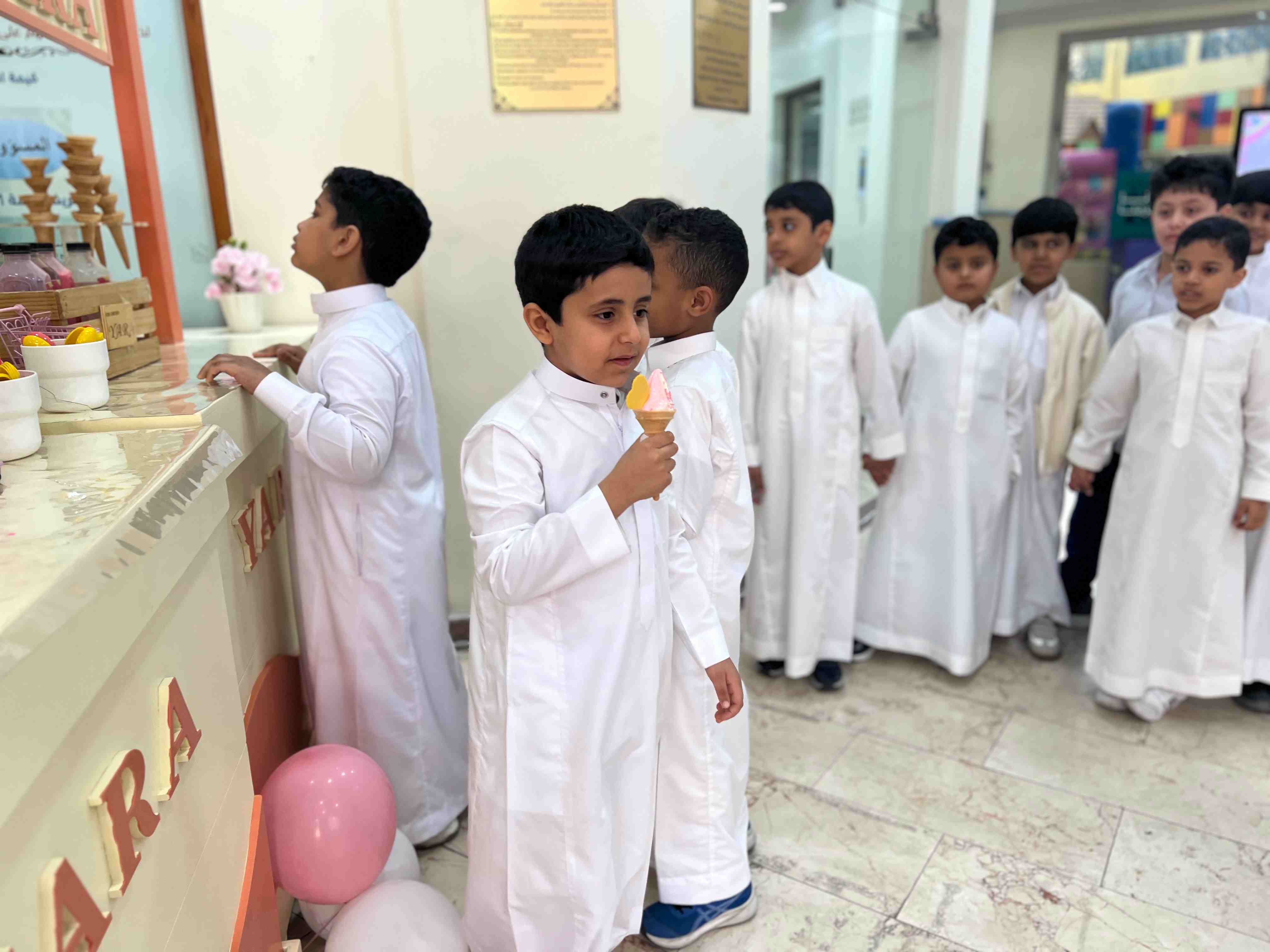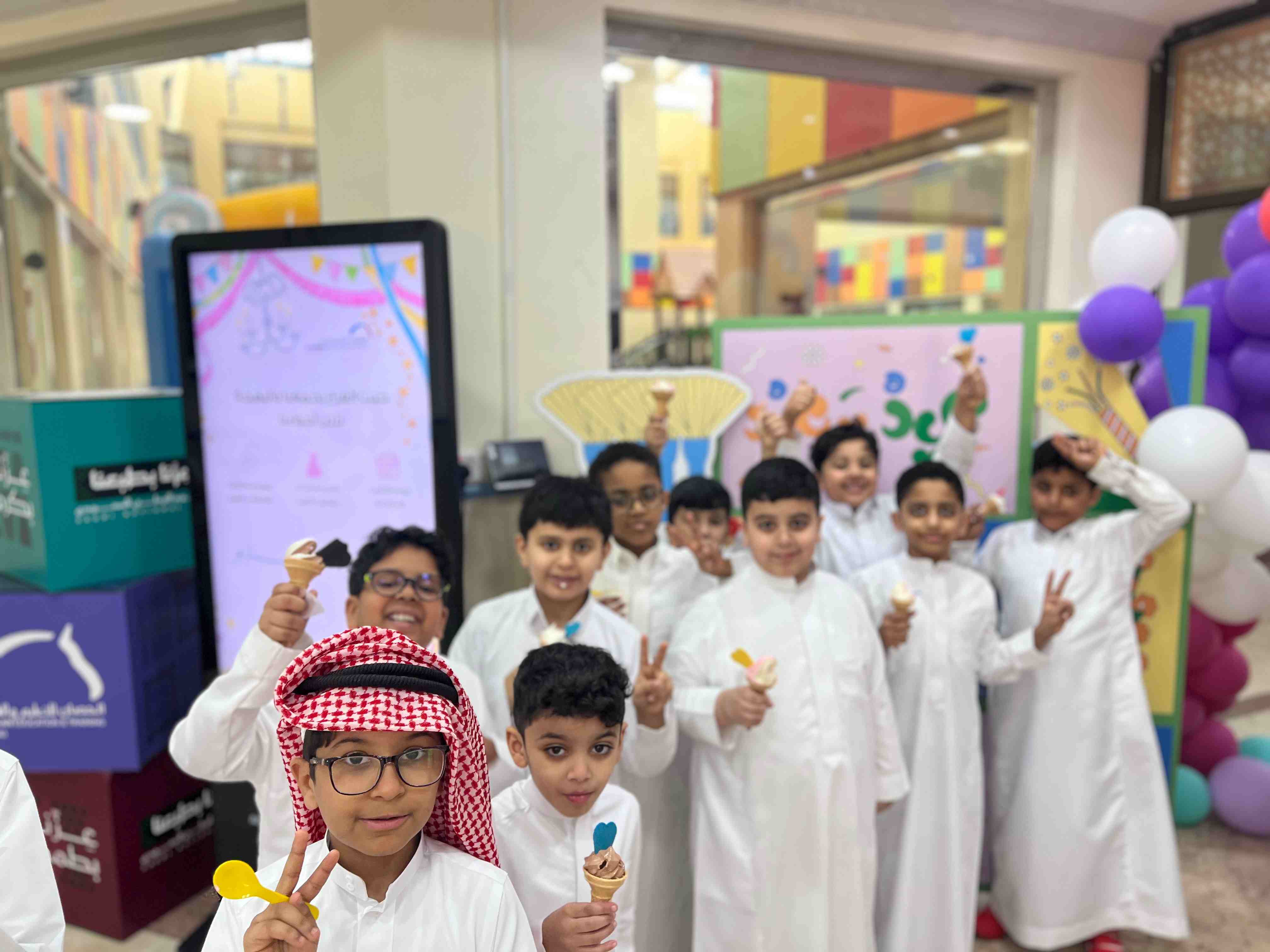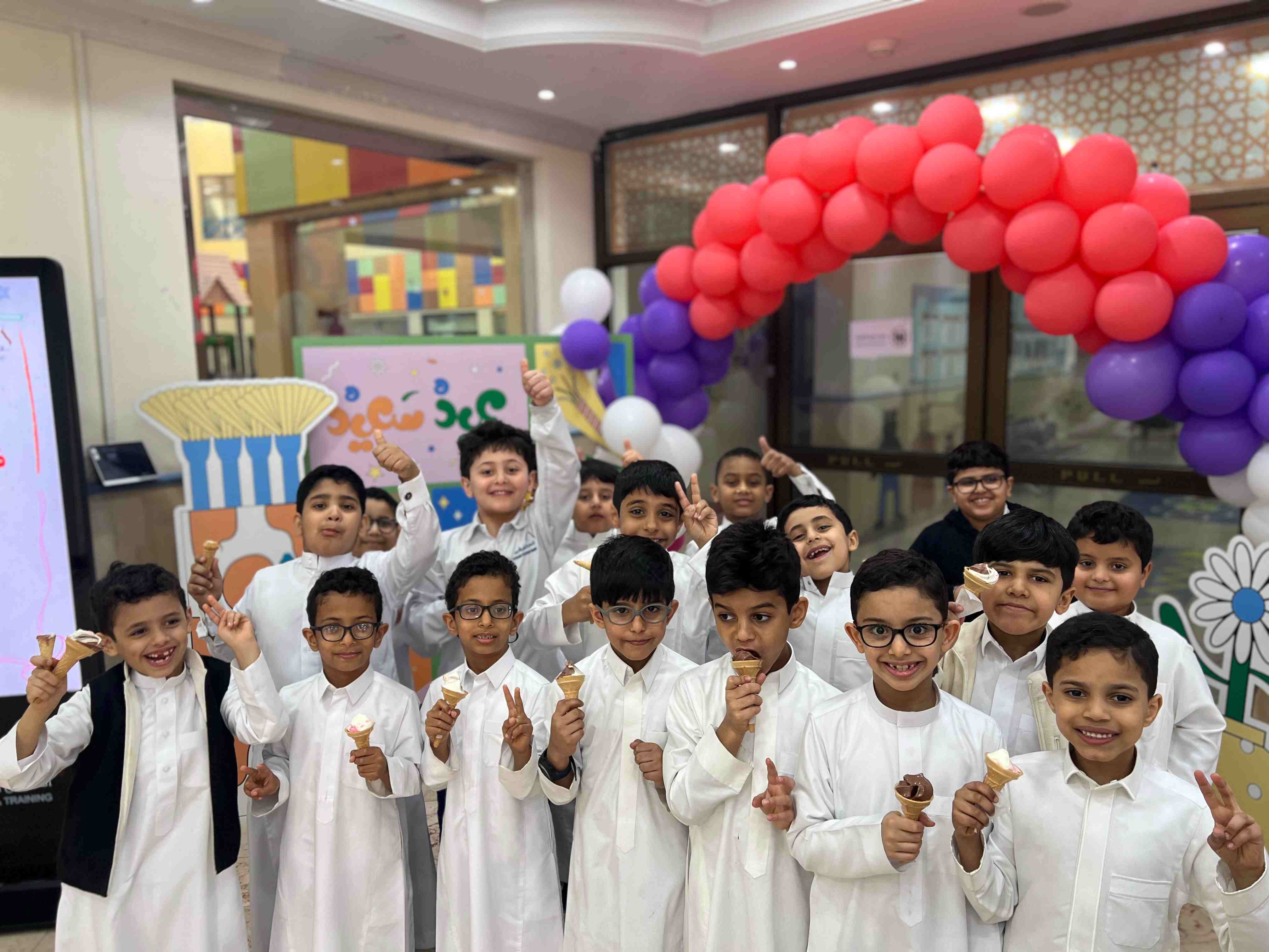 وقد تزيّنت المدرسة بالألوان والزينة الجميلة، وارتدى الجميع أجمل ملابسهم، وتبادلوا التهاني والهدايا، لتُصنع بذلك لحظاتٌ لا تُنسى، امتزجت فيها مشاعر الحب والمرح، ورسمت البسمة على وجوه الجميع.