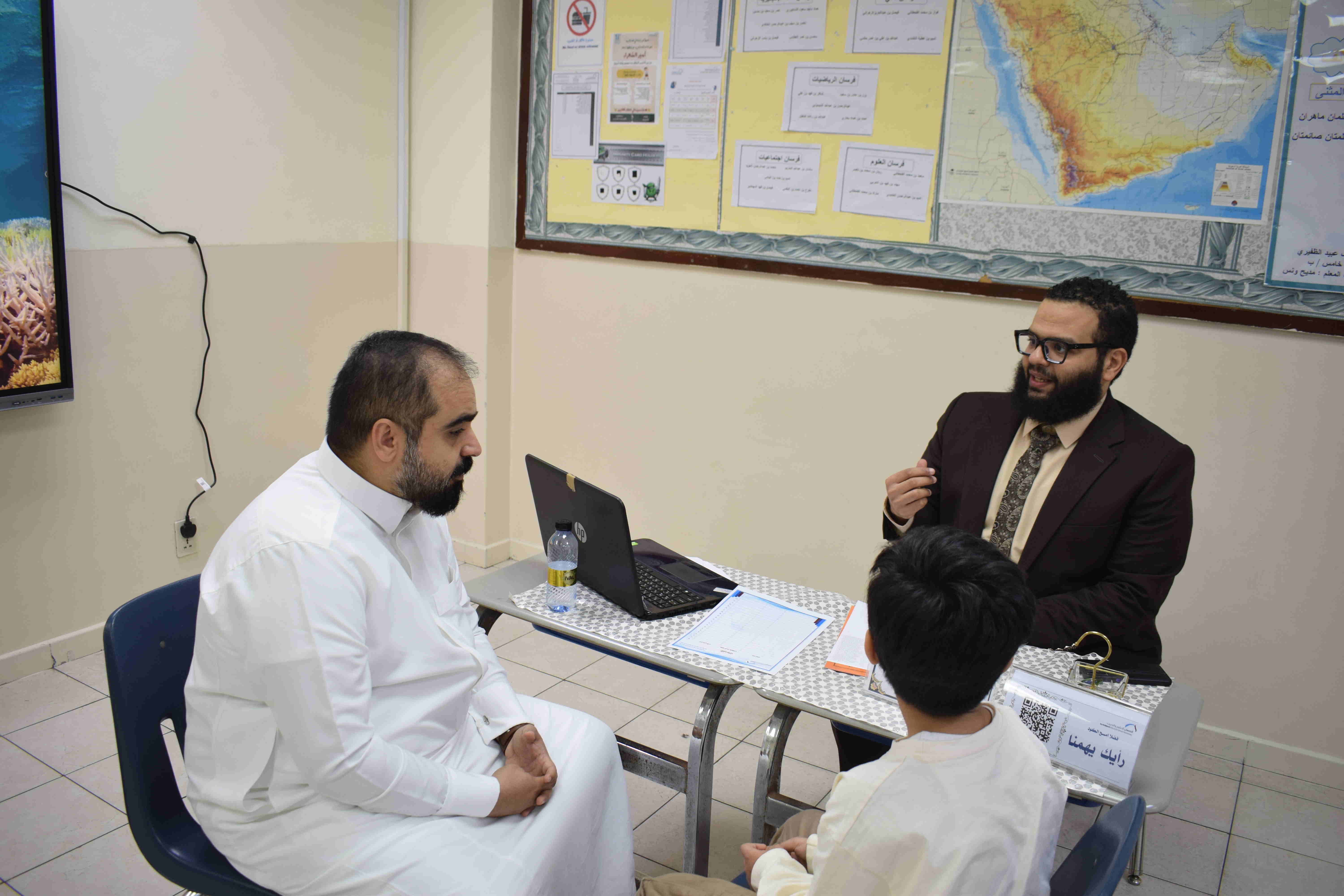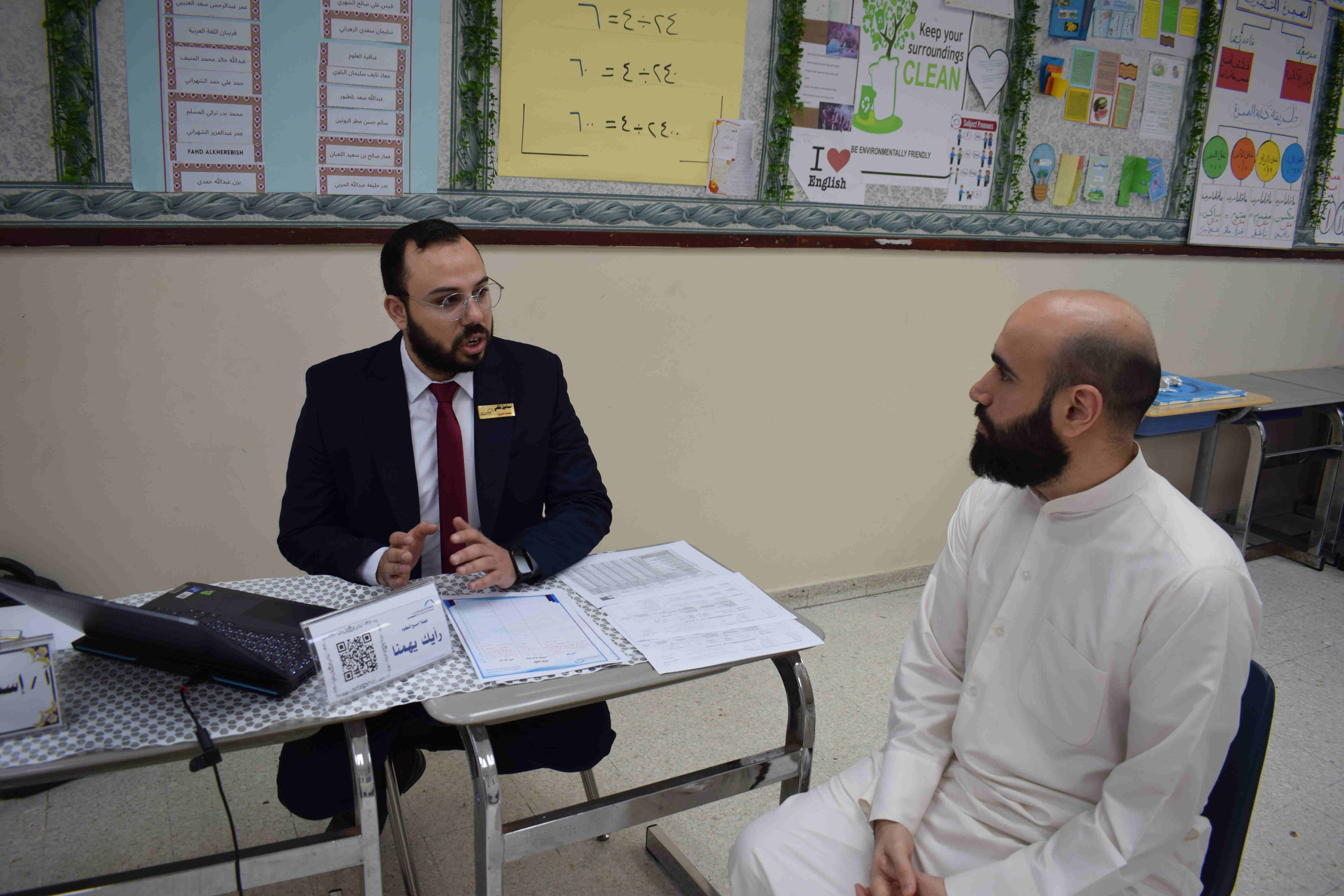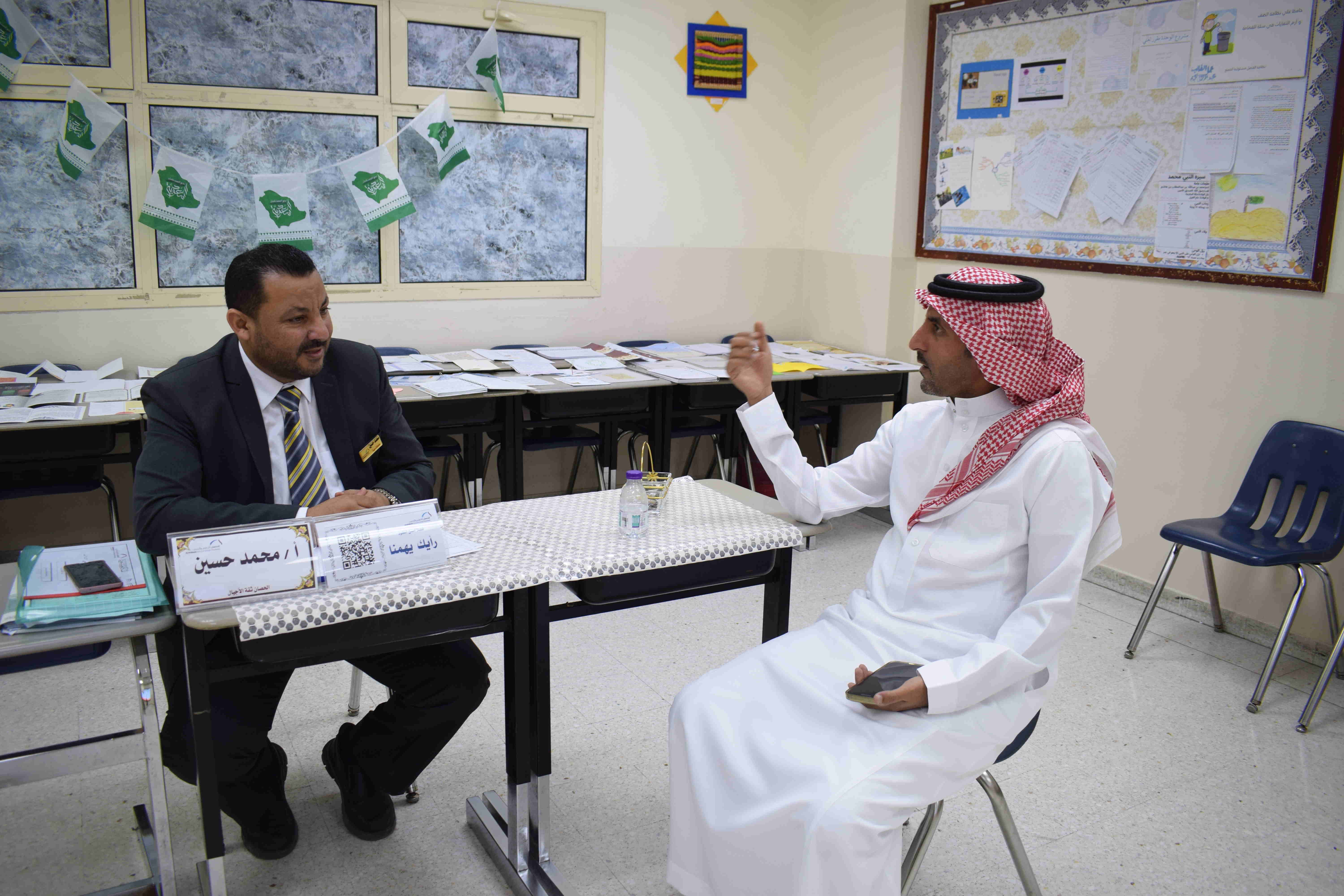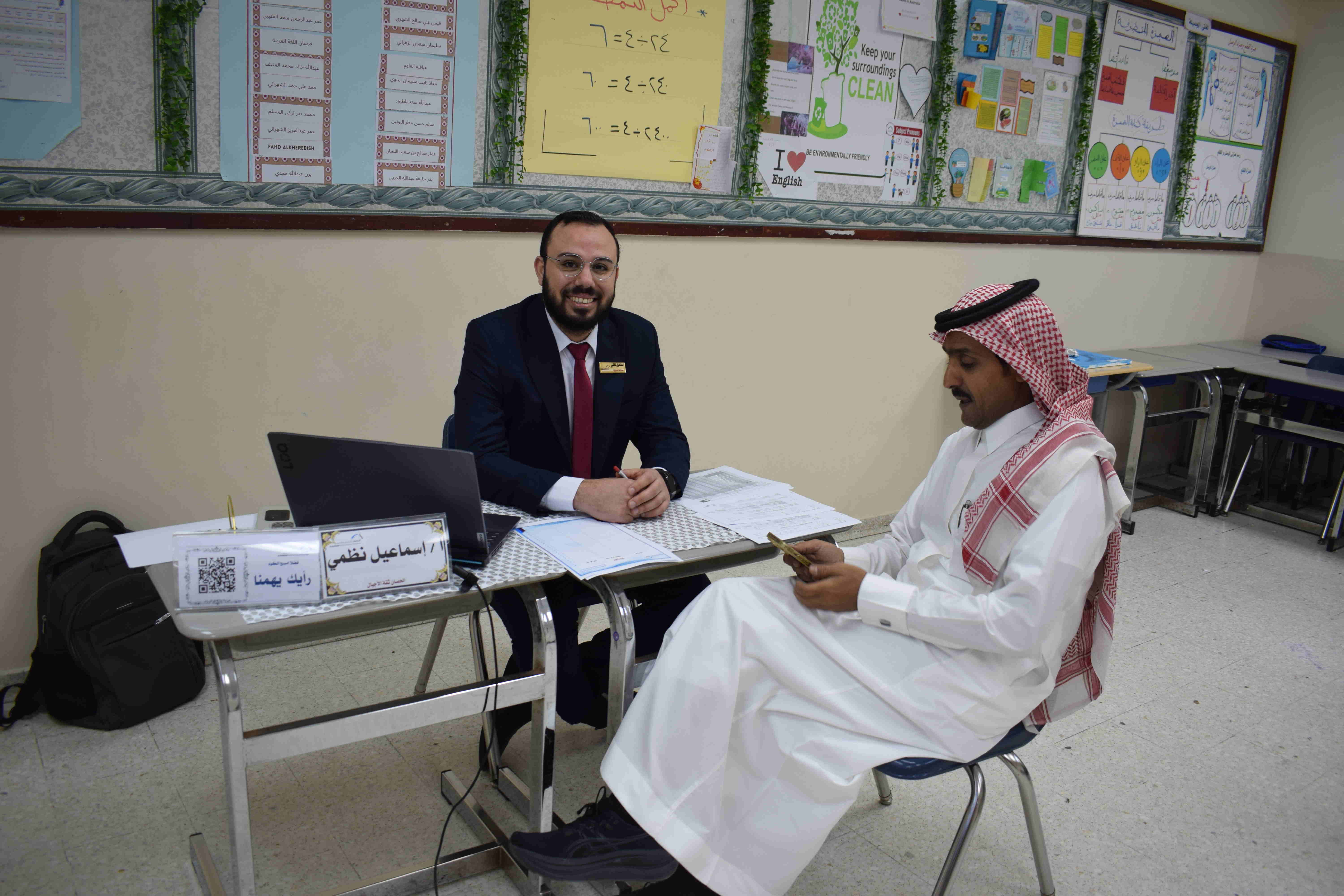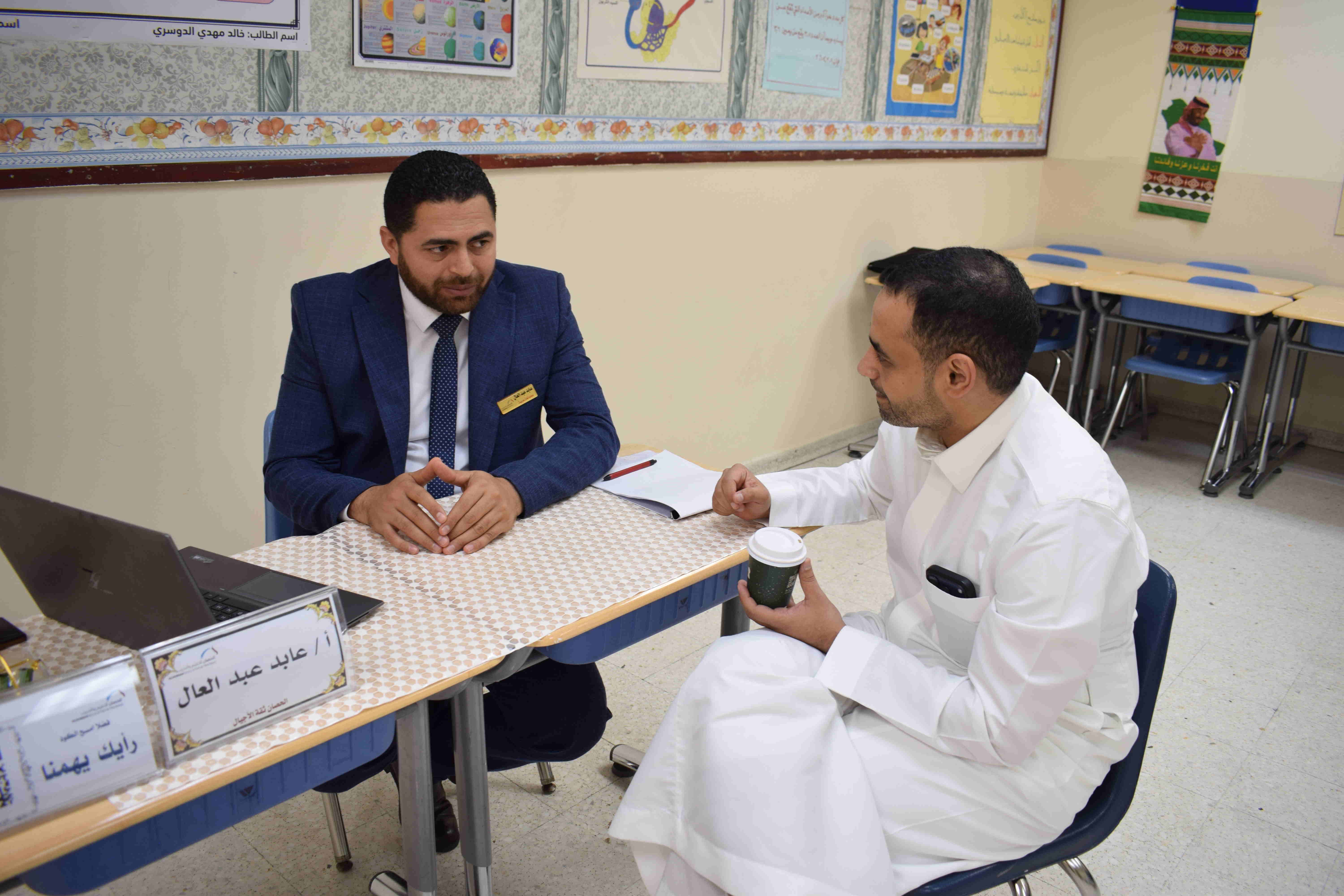 كما أتيح للآباء فرصة لقاء المعلمين ومناقشة مستوى أبنائهم وتبادل الآراء والمقترحات لتحسين الأداء.