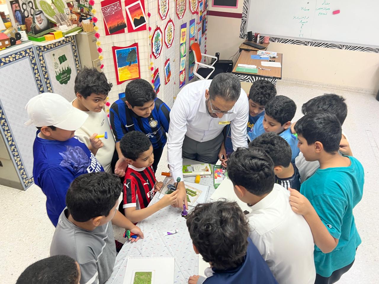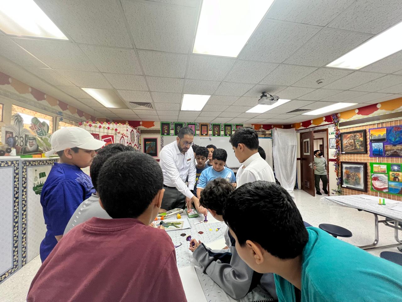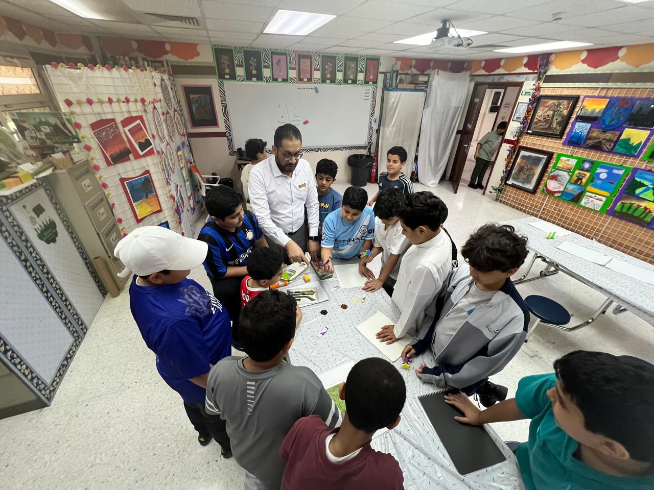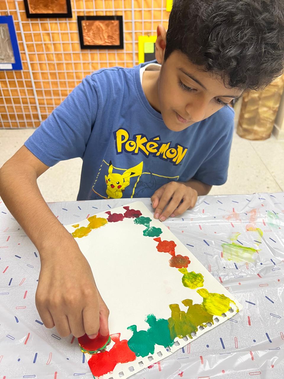 فن الطباعة بالقالب استمتع طلاب الصف السادس بالجبيل بتنفيذ طباعة القالب، ويعتبر فن الطباعة بالقالب من أمتع المهارات الفنية التي تهدف إلى زخرفة الأسطح الورقية والقماشية باستخدام وحدات هندسية ونباتية متكررة، مما يساعد الطلاب على فهم أسس التصميم والتكرار.
